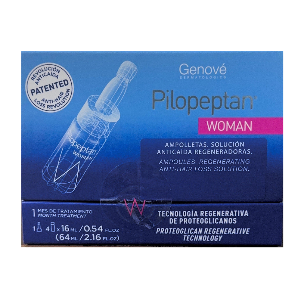 Presentado en un estuche con 4 ampolletas de 16ml y un aplicador, contribuye a la regeneración de la matriz de proteoglicanos del folículo piloso, estimula el crecimiento y aumenta la densidad capilar.