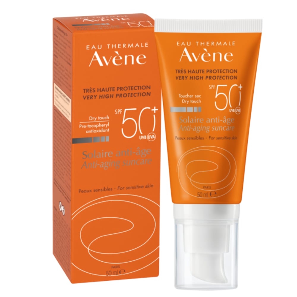 Protector solar antiedad FPS 50+, rutina de protección solar y antiedad, contribuye a la prevención del fotoenvejecimiento de las pieles sensibles.