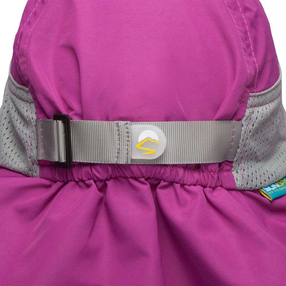 El velo trasero protege del sol, el cuello de los pequeños. Certificado Protector Solar UPF 50+.