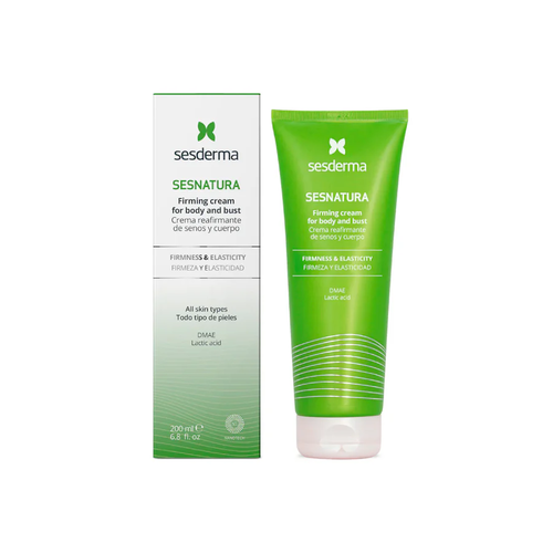 La crema Sesnatura Reafirmante Senos Cuerpo de Sesderma está formulada para mejorar la elasticidad y firmeza de la piel en la zona de los senos y el cuerpo. Su textura ligera y de rápida absorción proporciona una hidratación profunda, ayudando a tonificar y reafirmar la piel. Sesnatura reafirmante es una crema que reafirma la zona de los senos y cuerpo luego de periodos como la lactancia, pérdida de peso, embarazo, exposición al sol, falta de ejercicio, etc.