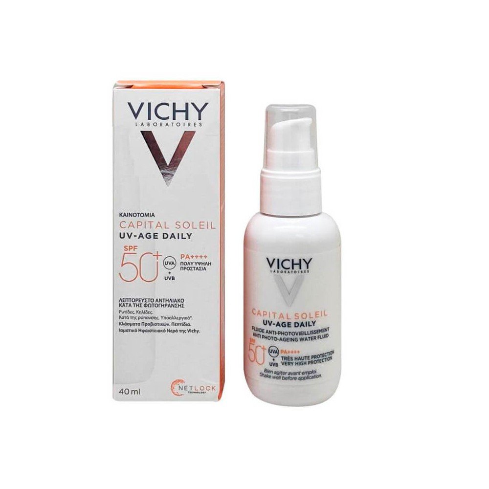 Vichy Capital Soleil Uv-Age Daily es una crema facial de protección solar diseñada para brindar una defensa avanzada contra los daños causados por los rayos UVA y UVB, además de ofrecer propiedades anti-edad.